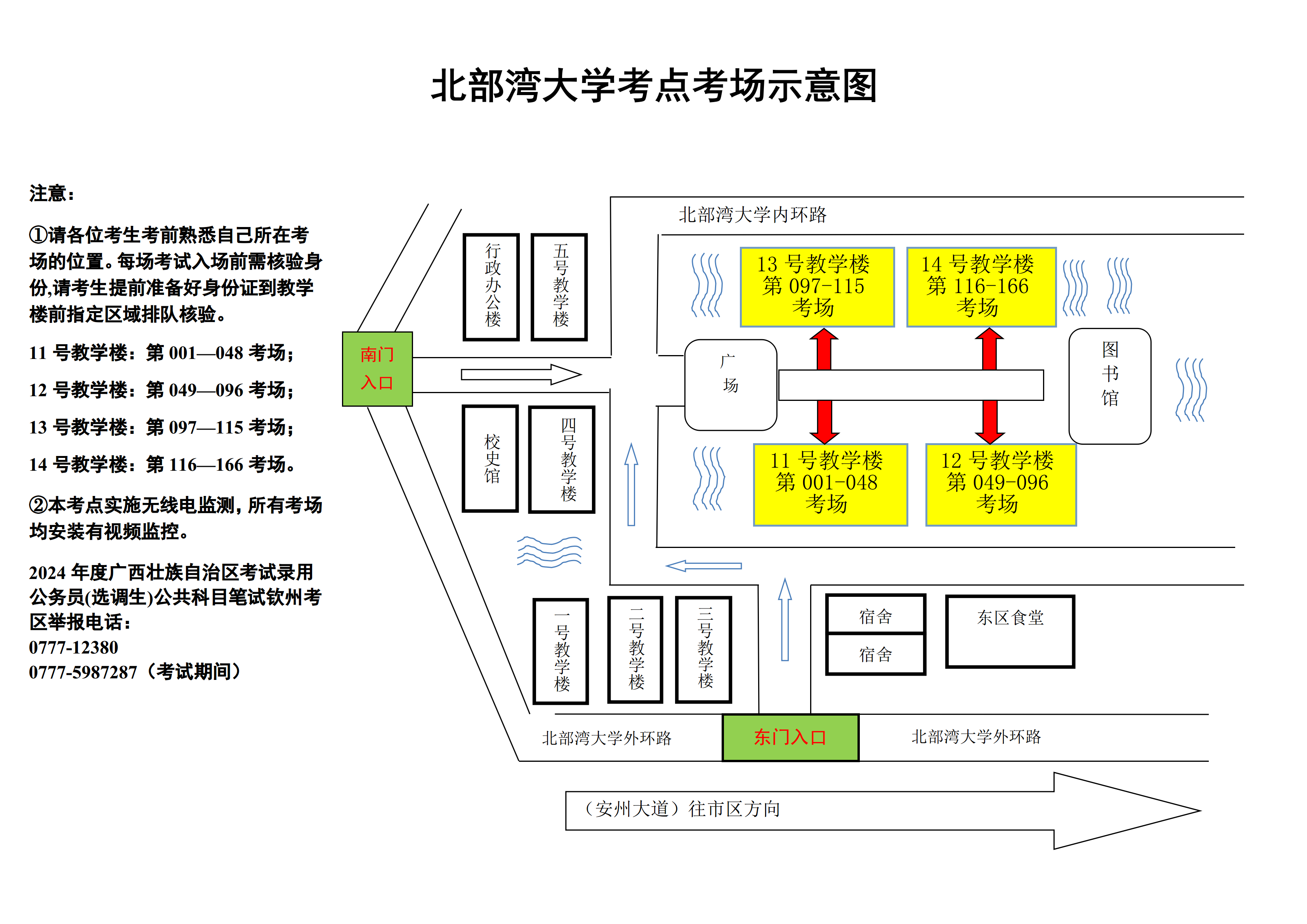 欽州考區(qū)共設(shè)兩個(gè)考點(diǎn),分別為北部灣職業(yè)技術(shù)學(xué)??键c(diǎn)和北部灣大學(xué)考點(diǎn)。請(qǐng)核對(duì)好本人準(zhǔn)考證上的考點(diǎn),兩個(gè)考點(diǎn)離市區(qū)有一定距離,請(qǐng)關(guān)注當(dāng)天天氣情況,充分考慮路途時(shí)間和天氣因素影響,每場(chǎng)考試前,提前60分鐘到達(dá)考點(diǎn)。(考點(diǎn)地址和具體考場(chǎng)安排請(qǐng)掃附后的二維碼查看)