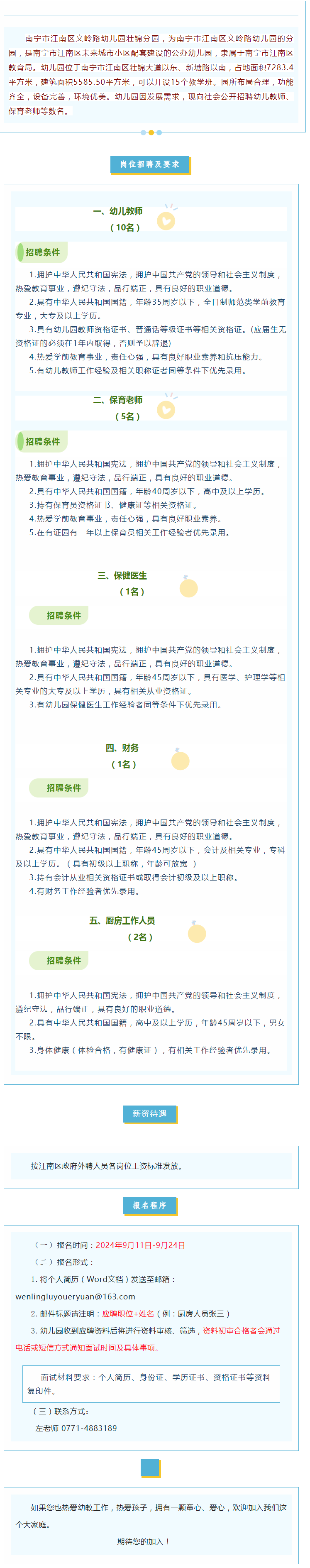 原文標(biāo)題:南寧市江南區(qū)文嶺路幼兒園壯錦分園?招聘公告