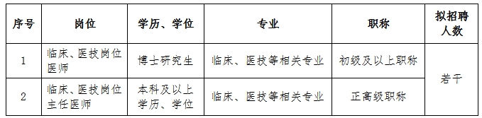 (二)臨床、醫(yī)技、護理等崗位人才(緊缺急需專業(yè):重癥醫(yī)學(xué)科、全科醫(yī)學(xué)科、康復(fù)醫(yī)學(xué)科、感染性疾病科、急診科、兒科、麻醉科、眼科、皮膚科、病理科、心腦電生理科等科室醫(yī)師)