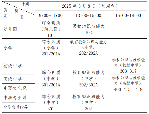 3.報考中職專業(yè)課和中職實習指導教師資格的考生,筆試考2個公共科目,科目代碼分別為301、302。