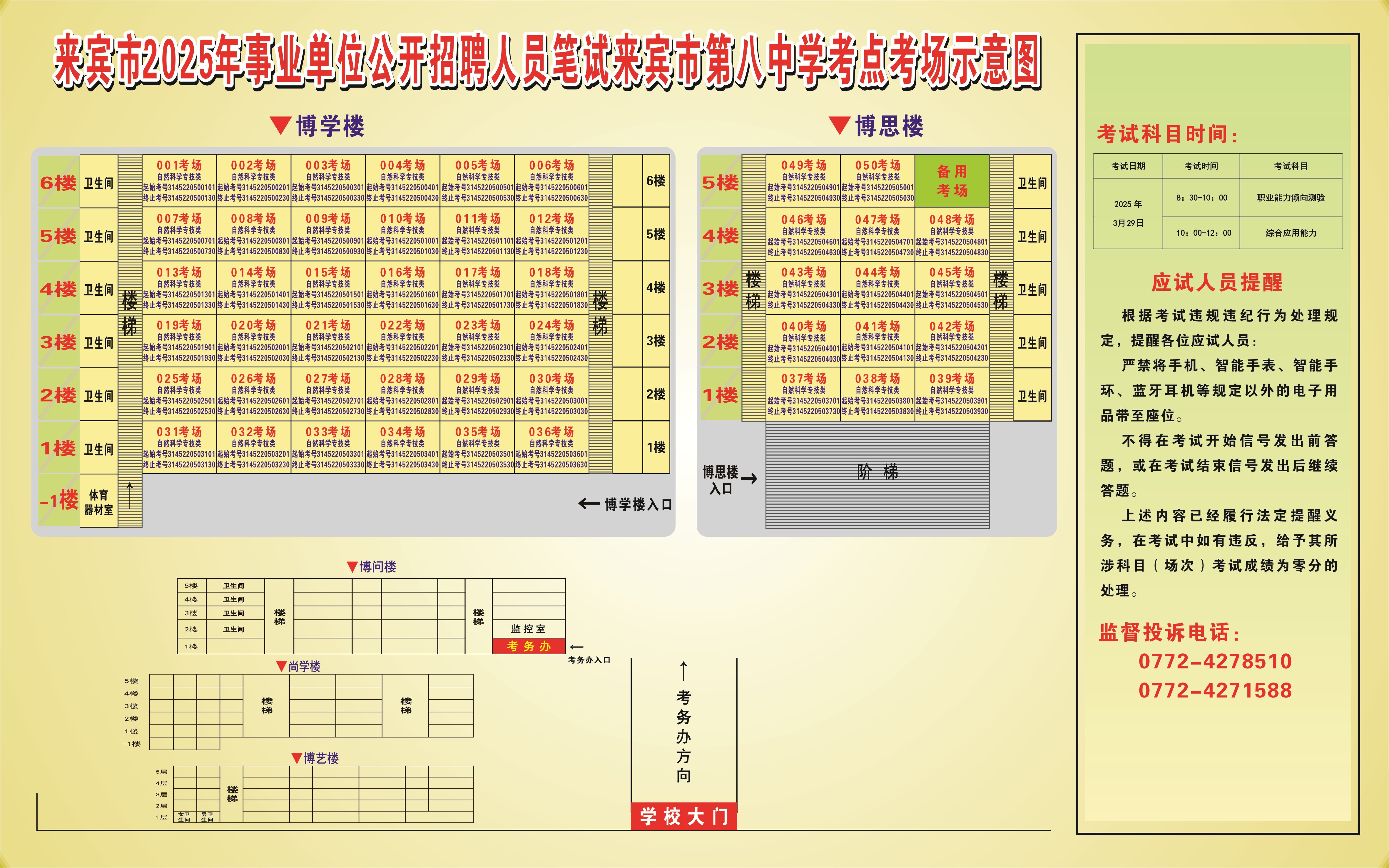 2025年來賓市公開招聘事業(yè)單位人員筆試 考生須知及考點考場示意圖
