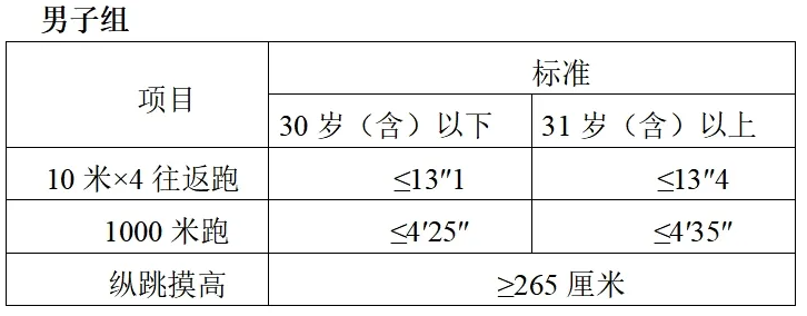 研究生及以上學(xué)歷報考人員參加體能測試三項(xiàng)內(nèi)容中有兩項(xiàng)達(dá)標(biāo)的,視為合格。非研究生及以上學(xué)歷報考人員體能測試三項(xiàng)全部達(dá)標(biāo)方為合格。