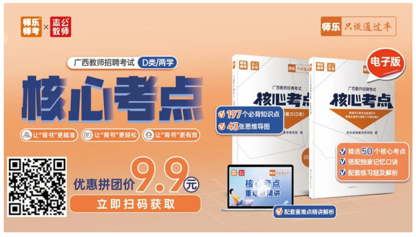 匹配考綱要求,精選50個(gè)核心考點(diǎn):銘師組團(tuán)精研,基于考綱收錄《教育學(xué)與教學(xué)法基礎(chǔ)知識(shí)》《教育心理學(xué)與德育工作基礎(chǔ)知識(shí)》核心考點(diǎn),重點(diǎn)突出,幫助考生學(xué)習(xí)記憶。