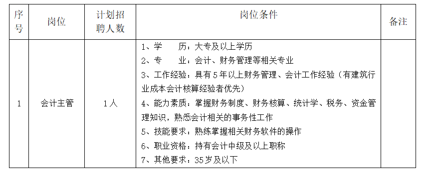 根據(jù)我公司業(yè)務(wù)發(fā)展需要,現(xiàn)面向社會(huì)公開招聘會(huì)計(jì)主管1名,相關(guān)事宜如下: