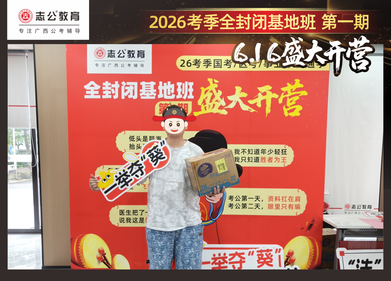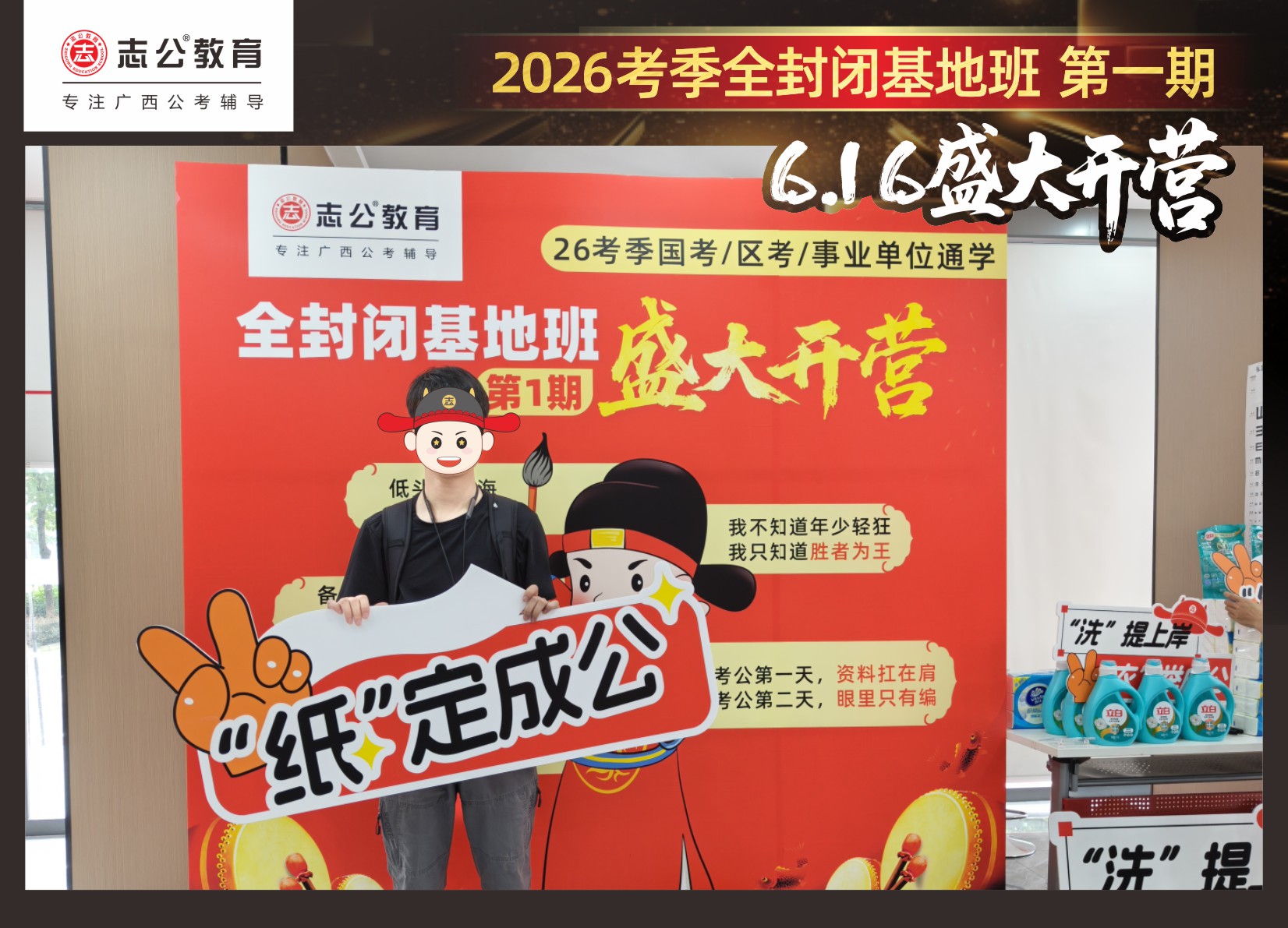 由于這段時(shí)間受臺(tái)風(fēng)影響,南寧迎來下雨天,但學(xué)員們滿懷先一步備考,快一步成功圓夢(mèng)的滿滿炙熱信心,早早就在志公教育(中關(guān)村)全封閉基地前臺(tái)等候,6月16日,志公教育26考季全封閉基地班第1期的學(xué)員們齊聚一堂,正式開啟他們的公考備戰(zhàn)之旅。簽到環(huán)節(jié)作為基地班課程的第一站,不僅是對(duì)學(xué)員們的歡迎儀式,更是他們邁向夢(mèng)想的第一步。
