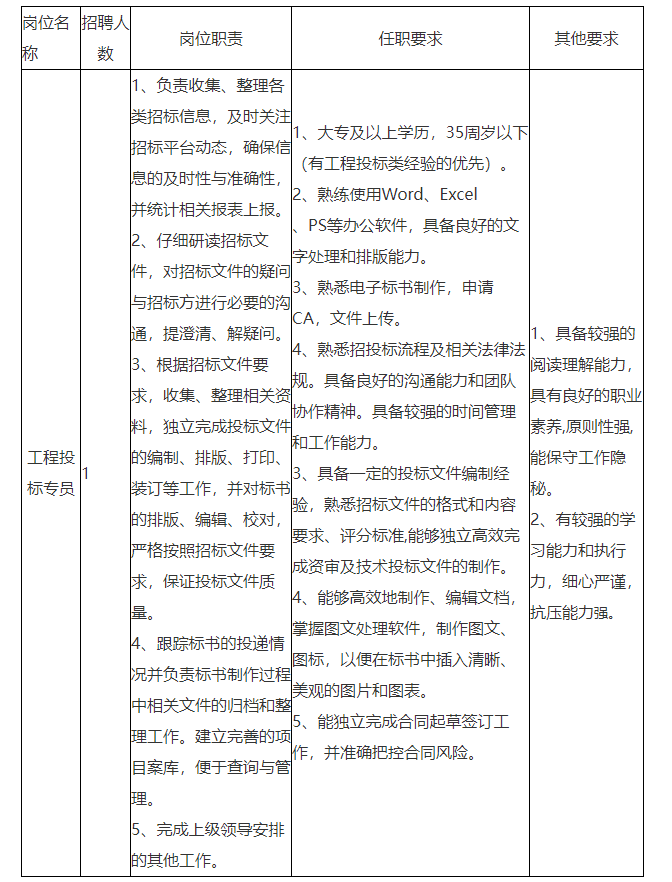 因公司發(fā)展需要,現(xiàn)面向社會誠聘英才,熱忱歡迎有志者加盟。本次招聘崗位1個,擬招1人。工作地點為百色市右江區(qū)。