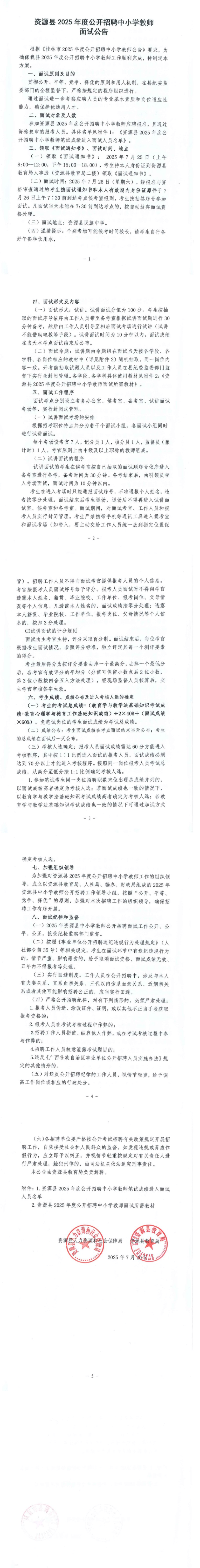 原文標題:資源縣2025年度公開招聘中小學教師面試公告