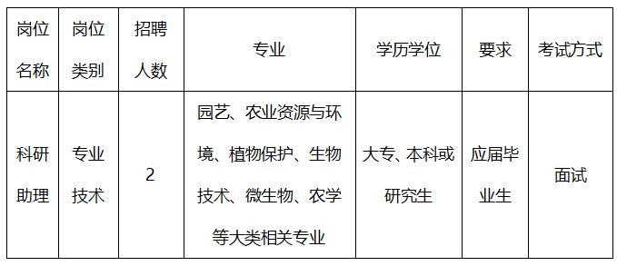 4.已獲得園藝、農(nóng)業(yè)資源與環(huán)境、植物保護(hù)、生物技術(shù)、微生物、農(nóng)學(xué)等相關(guān)專(zhuān)業(yè)大專(zhuān)、本科或研究生畢業(yè)證書(shū)(要求應(yīng)屆畢業(yè)生);