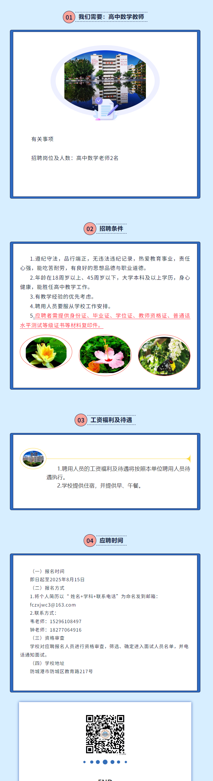 原文標題:防城港市防城中學2025年秋季學期高中數(shù)學頂崗教師招聘公告
