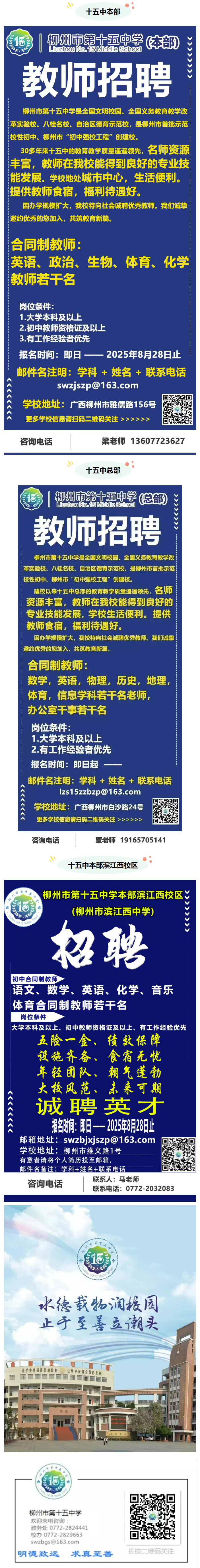 原文標(biāo)題:誠聘英才!柳州市第十五中學(xué)三校區(qū)招聘公告