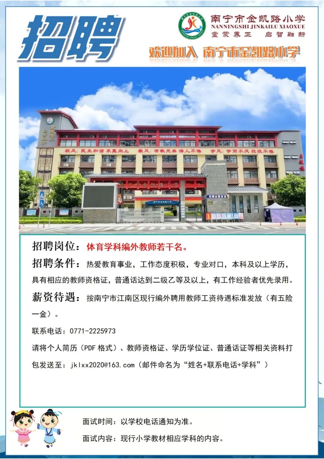 2025年南寧市金凱路小學(xué)招聘體育學(xué)科編外教師