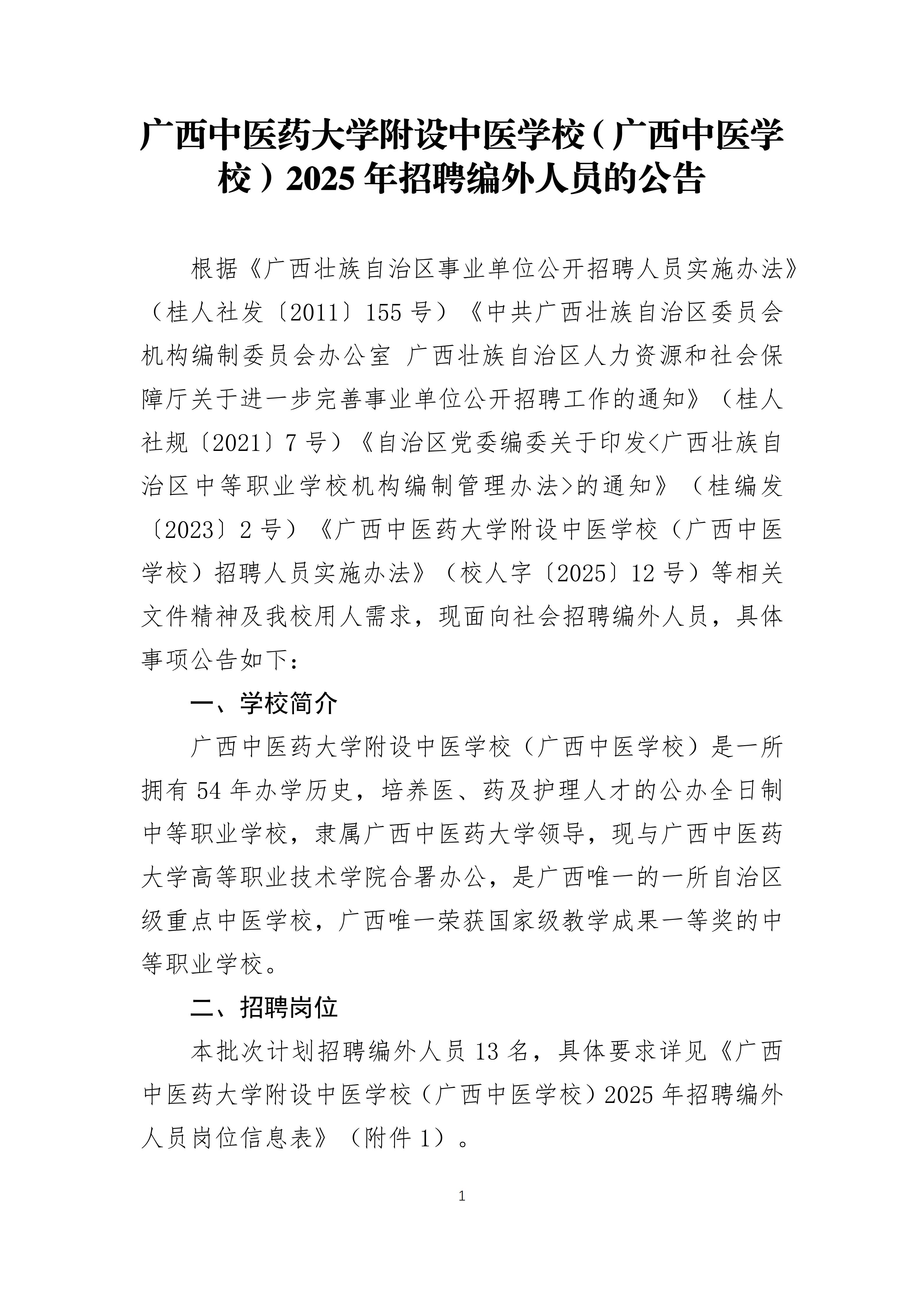 2025年廣西中醫(yī)藥大學(xué)附設(shè)中醫(yī)學(xué)校(廣西中醫(yī)學(xué)校)招聘編外人員13人