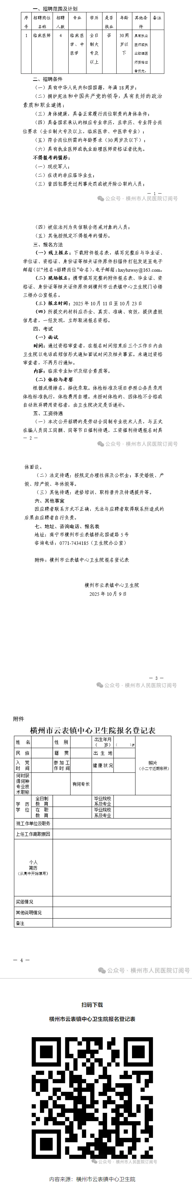 2025年橫州市云表鎮(zhèn)中心衛(wèi)生院公開招聘編外衛(wèi)生專業(yè)技術人員的公告