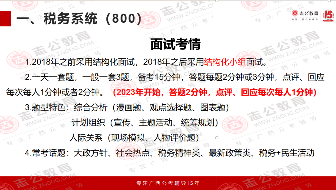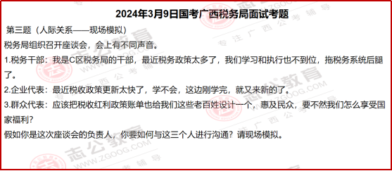 國考面試?yán)?,稅?wù)系統(tǒng)的題目一直有個(gè)很明顯的特點(diǎn),就是緊跟國家政策、貼近實(shí)際工作。尤其是2024年廣西稅務(wù)局的面試題,把這個(gè)特點(diǎn)體現(xiàn)得特別透徹。看這些題目,既能知道稅務(wù)工作實(shí)際需要什么樣的人、做什么樣的事,也能清楚面試到底要考察我們哪些核心能力。今天小志就帶大家了解一下,國考中稅務(wù)系統(tǒng)面試一些相關(guān)信息解讀: