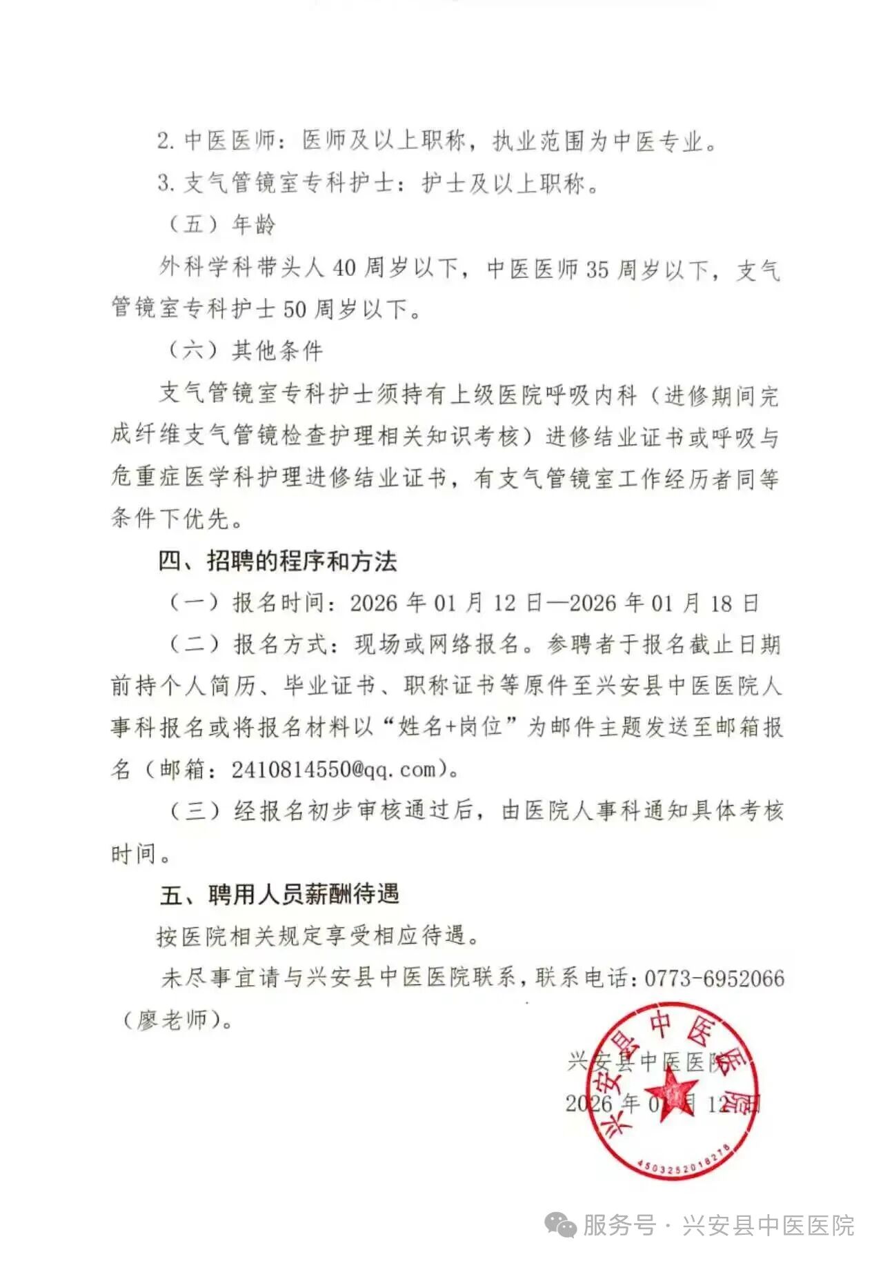 2026年興安縣中醫(yī)醫(yī)院招聘醫(yī)護(hù)人員的公告