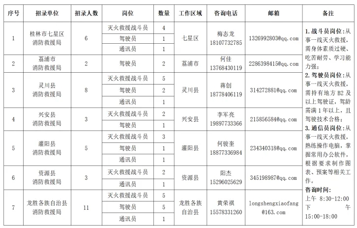 為進(jìn)一步加強(qiáng)全市消防救援力量建設(shè),提升綜合應(yīng)急救援能力,按照公平公正、平等自愿、競(jìng)爭(zhēng)擇優(yōu)的原則,桂林市消防救援局面向社會(huì)公開招錄政府專職消防員,現(xiàn)將有關(guān)事項(xiàng)公告如下: