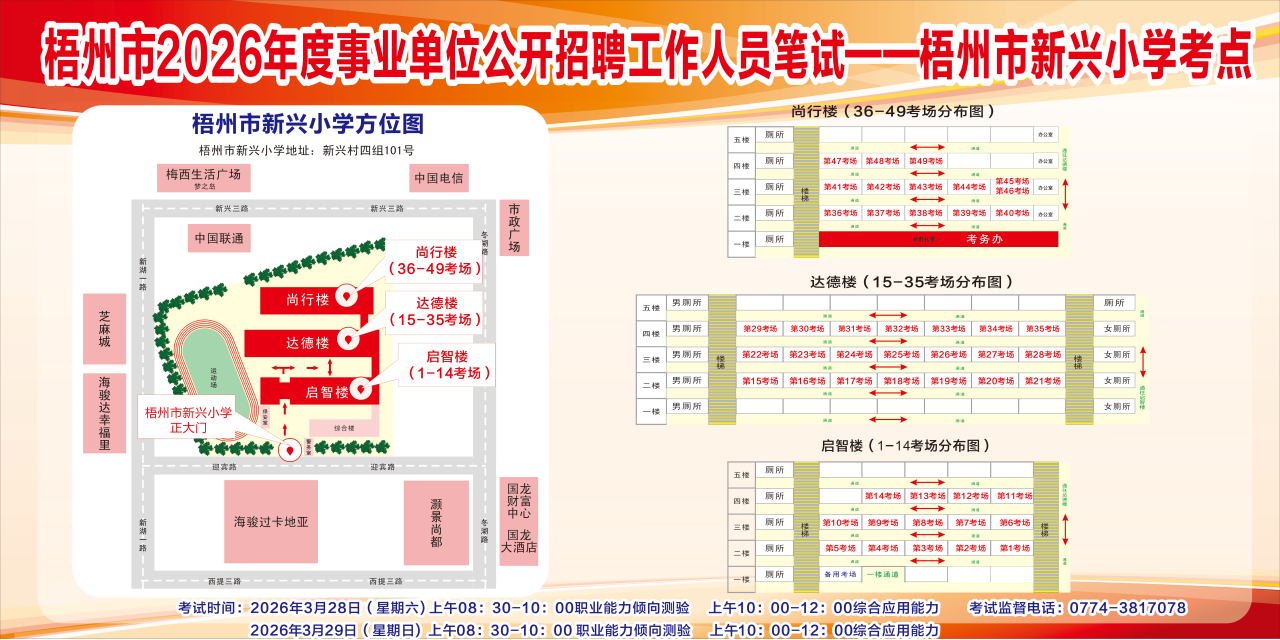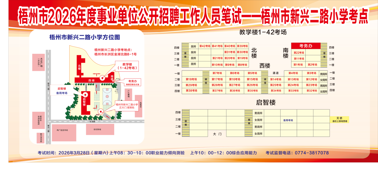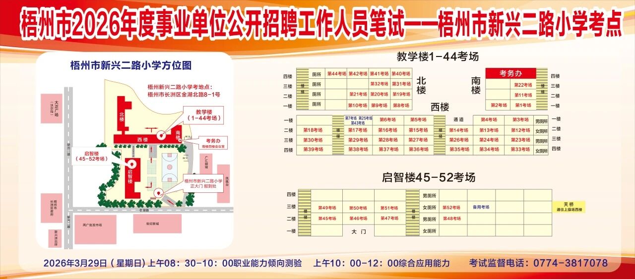 梧州市2026年度事業(yè)單位統(tǒng)一公開招聘筆試將于3月28日和3月29日舉行。具體安排如下: